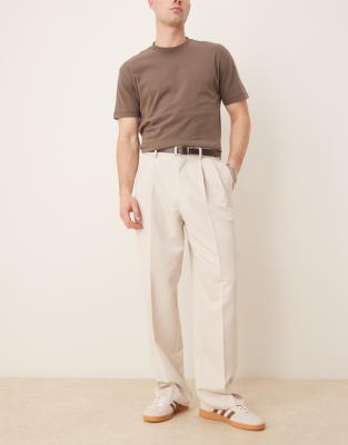 Trousers & Chinos by ASOS DESIGN Regular rise Belt loops Concealed fly Double pleat detail Side pockets Wide leg