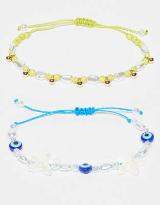 Accessories by ASOS DESIGN Pack of two Bead embellishment Adjustable length Pull closure