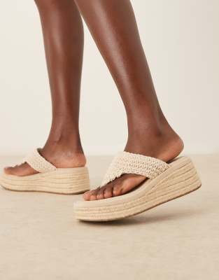 Shoes by ASOS DESIGN V-shaped straps Toe post Rope midsole Mid wedge heel