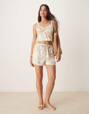 Shorts by Aray Exclusive to ASOS All-over print High rise Elasticated waistband Lace trim Regular fit