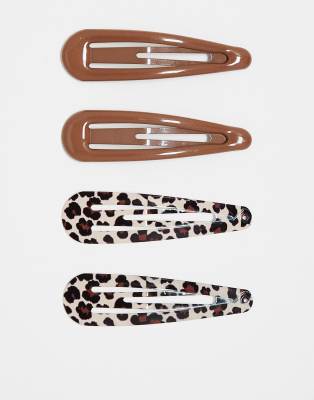 Accessories by ASOS DESIGN Pack of four Plain and animal designs Snap-shut style Secure clip