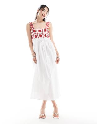 Dresses by Nobody's Child For your weekend mood board Square neck Crochet top Fixed straps Gathered detail Regular fit