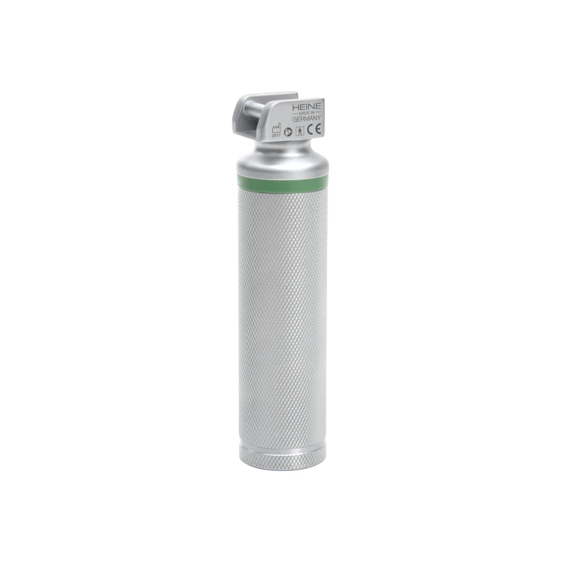 Λαβή Λαρυγγοσκοπίων Heine τεχνολογίας LED - Βραχεία - Επαναφορτιζόμενη. Επαναφορτιζόμενη Λαβή λαρυγγοσκοπίων LED με ποιότητα Heine (ΗQ). Το νέο πρότυπο στο φωτισμό LED που καθορίζει τη βέλτιστη ένταση του φωτός, την ομοιογένεια και την τέλεια απόδοση χρωμάτων. Το κόκκινο είναι κόκκινο & το μπλε είναι μπλε.Πολύ φωτεινό, λευκό φως με θερμοκρασία χρώματος αναφοράς 5.200 Kelvin & ενισχυμένη αντίθεση (contrast). Ο φωτισμός LED είναι 3 φορές πιο φωτεινός από τους συμβατικούς λαμπτήρες αλογόνου.Η διάρκεια ζωής της λυχνίας LED είναι 50.000 ώρες.Το κέλυφος της λαβής μπορεί να αποστειρωθεί σε αυτόκαυστο κλίβανο, ή κλίβανο πλάσματος ή άλλη διαδικασία χημικής απολύμανσης, ενώ το ένθετο μέρος που περιλαμβάνει την μπαταρία & τον λαμπτήρα LED μπορεί την ίδια στιγμή να φορτίζεται.Λειτουργία προοδευτικής μείωσης φωτισμού (Fade-Out): Η Λαβή λαρυγγοσκοπίων Heine Standard F.O. με τεχνολογία LED παρέχει μέγιστη φωτεινότητα σε σταθερή ένταση. Μόλις οι μπαταρίες φτάσουν σε χαμηλή στάθμη, η ένταση του φωτός προοδευτικά θα μειώνεται, ειδοποιώντας με αυτόν τον τρόπο τον χρήστη να αντικαταστήσει τις μπαταρίες ή να φορτίσει τη λαβή.Πρακτικά δεν θα χρειαστεί να αντικαταστήσετε ποτέ ξανά λαμπτήρα! Η Heine προσφέρει την πιο ολοκληρωμένη και ευέλικτη γκάμα λαβών λαρυγγοσκοπίων στην αγορά. Με επιλογή διαφορετικών μεγεθών, λειτουργία με κοινές αλκαλικές μπαταρίες 2.5V ή με επαναφορτιζόμενες μπαταρίες ιόντων λιθίου 3.5V, καθώς και εξειδικευμένες λειτουργίες ένδειξης φόρτισης. Οι λαβές λαρυγγοσκοπίων Heine είναι κατασκευασμένες από ανοξείδωτο μέταλλο, ανθεκτικές, με σαγρέ λαβές για σταθερό κράτημα και δέχονται αποσπώμενες λάμες με δυνατότητα επιλογής ανάμεσα σε διάφορους τύπους και μεγέθη (παιδιατρικές & ενηλίκων Paed, Macintosh, WIS, & Miller).Οι λαβές λαρυγγοσκοπίων αλκαλικών μπαταριών μπορούν να μετατραπούν σε επαναφορτιζόμενες λαβές, απλώς ανταλλάσσοντας το βιδωτό καπάκι της βάσης. Οι επαναφορτιζόμενες λαβές λαρυγγοσκοπίων διαθέτουν μια πλειάδα πλεονεκτημάτων:Διπλάσια διάρκεια. Πάνω από 120 λεπτά εργασίας χωρίς φόρτιση. Ελαφριές και αξιόπιστες.Χωρίς “Φαινόμενο Μνήμης” πλήρης χωρητικότητα όποτε χρειάζεται.Οι επαναφορτιζόμενες λαβές λαρυγγοσκοπίων είναι πάντα έτοιμες προς χρήση και είναι φιλικότερες προς το περιβάλλον σε σχέση με τις κοινές αλκαλικές του εμπορίου.Το εξωτερικό μέρος της λαβής των λαρυγγοσκοπίων κλιβανίζεται με όλες τις γνωστές διαδικασίες αποστείρωσης.Οι λαβές λαρυγγοσκοπίων Heine είναι συμβατές με όλες τις λάμες που ακολουθούν το πρότυπο ISO 7376 (πράσινου δακτύλιου).Η βραχεία λαβή λαρυγγοσκοπίων Heine αλκαλικών μπαταριών παραδίδεται χωρίς μπαταρίες.Η λαβή λαρυγγοσκοπίων Heine επαναφορτιζόμενων μπαταριών παραδίδεται πλήρης με μπαταρία & καπάκι φόρτισης (απαιτείται η προμήθεια φορτιστή).