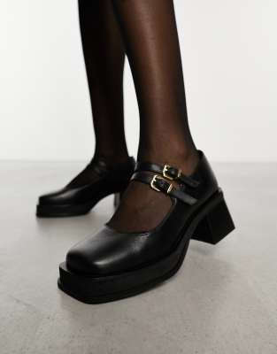 Shoes by WALK LONDON These shoes + you = solemates Adjustable strap Pin-buckle fastening Square toe Chunky sole Mid block heel