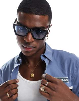 Sunglasses by ASOS DESIGN Suited to sunny days Square frames Moulded nose pads Coloured lenses Standard arms Good UV protection