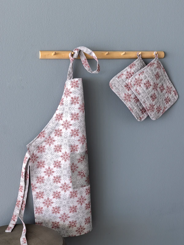 Ποδιά κουζίνας με σχέδιο χιονονιφάδες σε γκρι-μπορντώ χρώμα από την εταιρεία Palamaiki. Κατασκευασμένη από 80% βαμβάκι και 20% Polyester, που την καθιστά εξαιρετικά μαλακή και ανθεκτική. Ιδανική λύση για να προστατεύσετε τα ρούχα σας από τους ανεπιθύμητους λεκέδες του μαγειρέματος. Διατίθεται τραπεζομάντηλο και ράνερ στο ίδιο σχέδιο. Διαστάσεις // 80Χ60 Ποιότητα // 80% cotton – 20% polyester