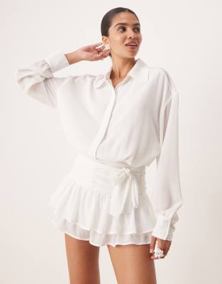 Επισκέψου το κατάστημα Asos για να δεις περισσότερες λεπτομέρειες και φωτογραφίες για το Amy Lynn sheer ruffle bloomer playsuit with shirt top in white. Για αγορά του Amy Lynn sheer ruffle bloomer playsuit with shirt top in white πρέπει να επισκεφτείς το κατάστημα Asos.