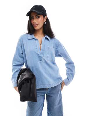 Επισκέψου το κατάστημα Asos για να δεις περισσότερες λεπτομέρειες και φωτογραφίες για το ONLY denim polo shirt in light blue. Για αγορά του ONLY denim polo shirt in light blue πρέπει να επισκεφτείς το κατάστημα Asos.