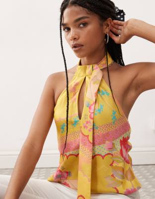 Tops by Reclaimed Vintage All-over print Halterneck style Scarf detail Front keyhole Regular fit