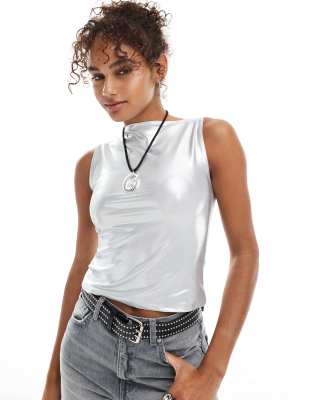 Tops by Miss Selfridge Shimmer finish High neck Sleeveless style Regular fit