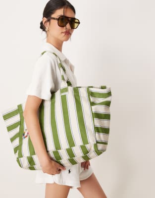 Accessories by Becksondergaard Stripe design Tote style Twin handles Clasp fastening Internal zip fastening Charm detail