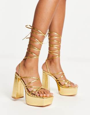 Shoes by Truffle Collection Level up Tie-leg fastening Open toe Platform sole High block heel