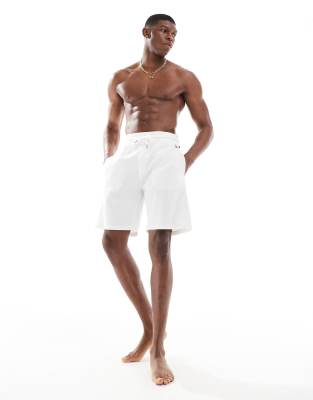 Shorts by BOSS Orange Transitional style perfected Textured finish Regular rise Elasticated drawstring waist Side pockets Relaxed fit