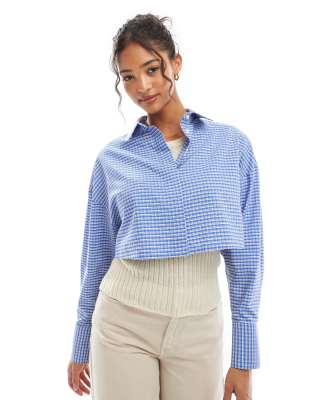 Tops by ASOS DESIGN 9-5 style: sorted Check design Spread collar Concealed button placket Long sleeves Cropped length Regular fit