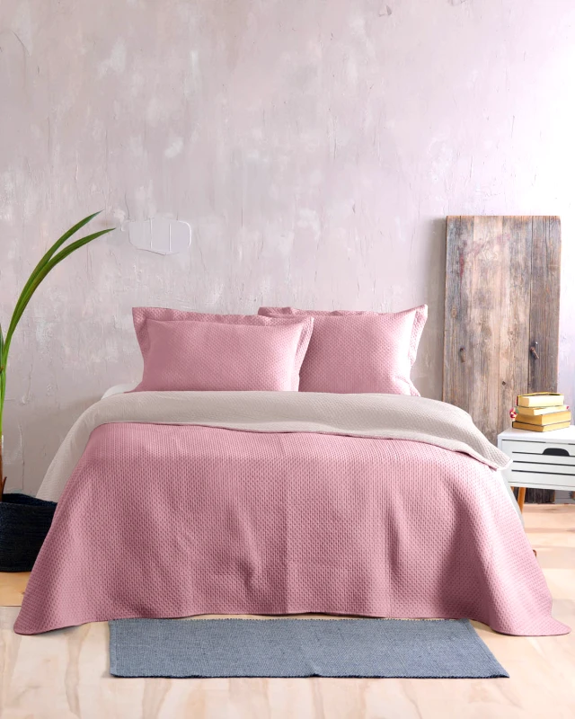 Σετ κουβερλί king size διπλής όψης μονόχρωμο σε σάπιο μήλο-μπεζ χρώμα της εταιρείας RYTHMOS HOME. Η ποιότητά του είναι από υψηλής ποιότητας ύφασμα μικροϊνών ενώ εσωτερικά διαθέτει λεπτή ψημένη πολυεστερική βάτα. Ιδανικό σκέπασμα για τους καλοκαιρινούς-ανοιξιάτικους μήνες. Διατίθεται σε 4 αποχρώσεις. Διαστάσεις // (240X250) + 2(50Χ70) Ποιότητα // 100% microfiber