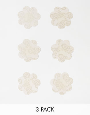 Lingerie & Nightwear by ASOS DESIGN Treats for your top drawer Pack of three Easy to apply Stick-on style with adhesive backing Product is non-returnable for hygiene reasons https://www.asos.com/customer-care/product-stock/what-are-your-adhesive-product-guidelines/