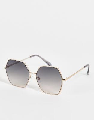 Sunglasses by Jeepers Peepers Serving real shade Oversized hexagon frames Adjustable silicone nose pads Gradient-tinted lenses Slim arms
