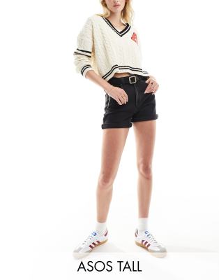 Shorts by ASOS Tall Your new go-to High rise Belt loops Five pockets Roll-up hem Mom fit