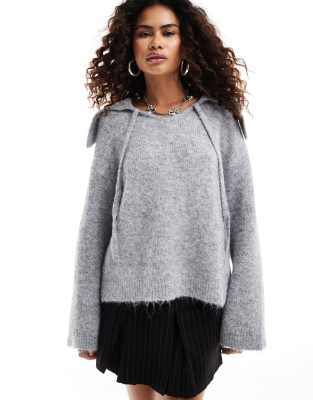 Jumpers & Cardigans by Urban Revivo Knitwear until further notice Oversized collar Drop shoulders Tie detail Regular fit