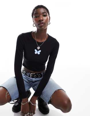 Tops by Monki Your new go-to Crew neck Long sleeves Butterfly motif to chest Slim fit