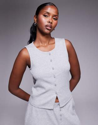 Suits & Separates by ASOS Weekend Collective Round neck Button placket Sleeveless style Branded patch to back Slim fit