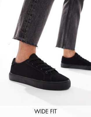 Shoes by ASOS DESIGN Wide Fit Your casualwear companions Low-profile design Lace-up fastening Durable rubber outsole Textured grip tread Wide fit