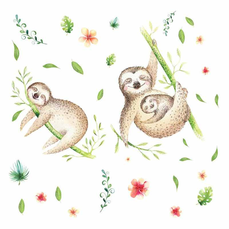Παιδικά ποιοτικά και κομψά αυτοκόλλητα RoomMates με φιγούρες από βραδύποδες, ιδανικά για unisex δωμάτιο. Δεν αφήνουν σημάδια και υπολείμματα στον τοίχο κατά την αφαίρεσή τους.