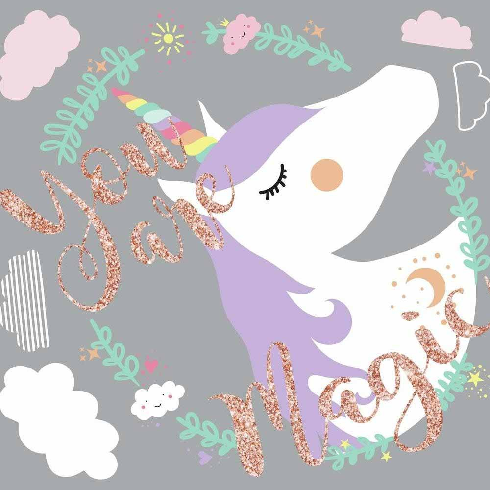 Παιδικό ποιοτικό και κομψό αυτοκόλλητο RoomMates με φιγούρα μονόκερου, ιδανικό για δωμάτιο κοριτσιού. Έχουν λεπτομέρειας με glitter για μοναδικό εφέ λάμψης. Δεν αφήνει σημάδια και υπολείμματα στον τοίχο κατά την αφαίρεσή του. Η συσκευασία περιλαμβάνει 6 αυτοκόλλητα με διαστάσεις από 4x7εκ. μέχρι 45.5x42.5εκ. Τελικό αποτέλεσμα σύνθεσης 107x56εκ.