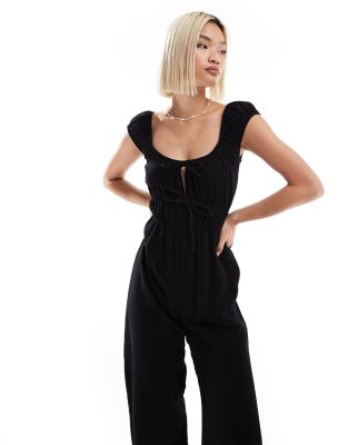 Επισκέψου το κατάστημα Asos για να δεις περισσότερες λεπτομέρειες και φωτογραφίες για το Reclaimed Vintage textured tie front jumpsuit in black. Για αγορά του Reclaimed Vintage textured tie front jumpsuit in black πρέπει να επισκεφτείς το κατάστημα Asos.