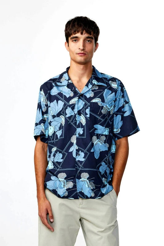Ανδρικό πουκάμισο. All-over floral print. Κλασσικός γιακάς. Κοντό μανίκι. Τσέπη slip στο στήθος. Logo label στο πλάι. Regular fit. Κλείσιμο με κουμπιά. 47% βαμβάκι, 43% lyocell