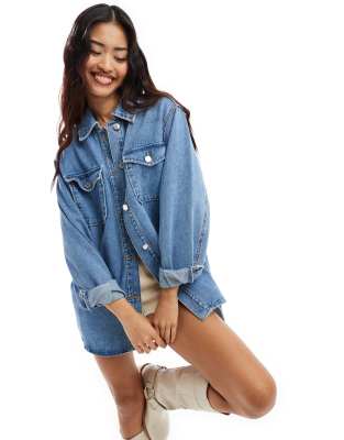Επισκέψου το κατάστημα Asos για να δεις περισσότερες λεπτομέρειες και φωτογραφίες για το Vero Moda oversized denim shacket in medium blue. Για αγορά του Vero Moda oversized denim shacket in medium blue πρέπει να επισκεφτείς το κατάστημα Asos.