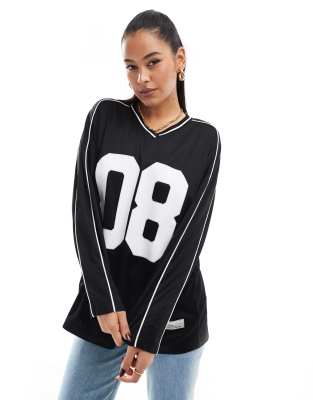 Tops by Stradivarius Off-duty mood Varsity design V-neck Long sleeves Relaxed fit