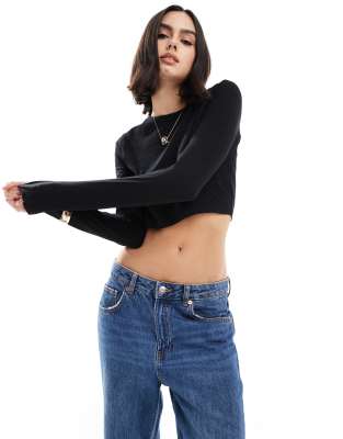 Επισκέψου το κατάστημα Asos για να δεις περισσότερες λεπτομέρειες και φωτογραφίες για το Threadbare long sleeve baby crop tee in black. Για αγορά του Threadbare long sleeve baby crop tee in black πρέπει να επισκεφτείς το κατάστημα Asos.