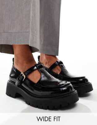 Shoes by London Rebel Wide Fit Pavement potential Pull tab for easy entry Adjustable strap Pin-buckle fastening Round toe Chunky sole Wide fit