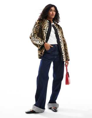 Coats & Jackets by ASOS DESIGN Mid-season layering Animal print Collarless style Button placket Regular fit