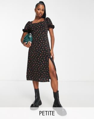 Dresses by Glamorous Petite Daywear dressing done right Square neck Puff sleeves Tie back Shirred stretch panel to reverse Thigh-high split Regular fit