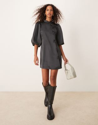 Dresses by Glamorous Mini dress major impact Plain design High neck Tie front Puff sleeves Regular fit