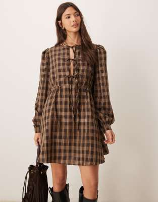 Dresses by Glamorous For brunch and beyond Check design High neck Tie-keyhole front Blouson sleeves Gathered waist Regular fit