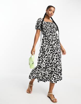 Dresses by Influence Picnic basket: optional Square neck Puff sleeves Elasticated waist Regular fit