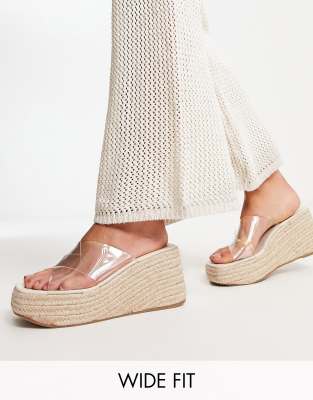 Shoes by ASOS DESIGN Wide Fit Who needs the back of a shoe? Slip-on style Rope midsole Platform sole High wedge heel Wide fit