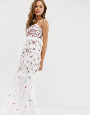Maxi dress by Needle & Thread Cos an epic event requires epic details Scoop neck Ruffle trims Adjustable straps Tiered design Floral embroidery Layered skirt Regular fit No surprises just a classic cut