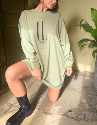 Dress by Il Sarto Shot by one of our stylists at home Crew neck Drop shoulders Logo print to chest Ribbed trims Relaxed fit Loose cut #AtHomeWithASOS