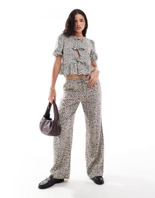 Trousers & Leggings by Stradivarius Part of a co-ord set Top sold separately Animal print High rise Elasticated drawstring waist Side pockets Wide leg
