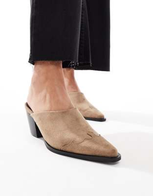Shoes by Glamorous Good things come in pairs Western inspired Backless style Point toe Mid block heel