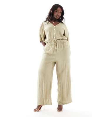 Jumpsuits & Playsuits by Pretty Lavish Curve Go all-in-one V-neck Button placket Short sleeves Drawstring waist Wide leg Regular fit