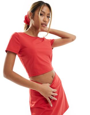 Tops by Stradivarius Part of a co-ord set Skort sold separately Crew neck Short sleeves Scoop back Cropped length Slim fit