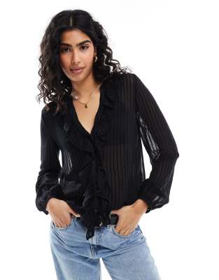 Επισκέψου το κατάστημα Asos για να δεις περισσότερες λεπτομέρειες και φωτογραφίες για το Stradivarius frill detail blouse in black. Για αγορά του Stradivarius frill detail blouse in black πρέπει να επισκεφτείς το κατάστημα Asos.
