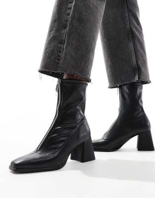 Shoes by Stradivarius Double-tap worthy Pull-on style Zip-front fastening Square toe Mid block heel