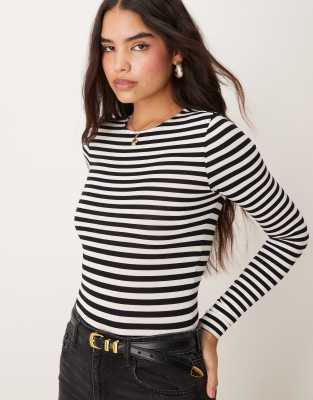 Tops by Miss Selfridge Take it back to basics Stripe design Crew neck Long sleeves Bodycon fit