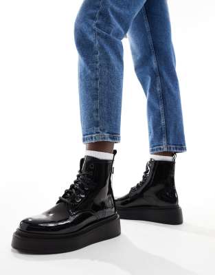 Επισκέψου το κατάστημα Asos για να δεις περισσότερες λεπτομέρειες και φωτογραφίες για το Levi's Harlow lace up patent boots in black. Για αγορά του Levi's Harlow lace up patent boots in black πρέπει να επισκεφτείς το κατάστημα Asos.